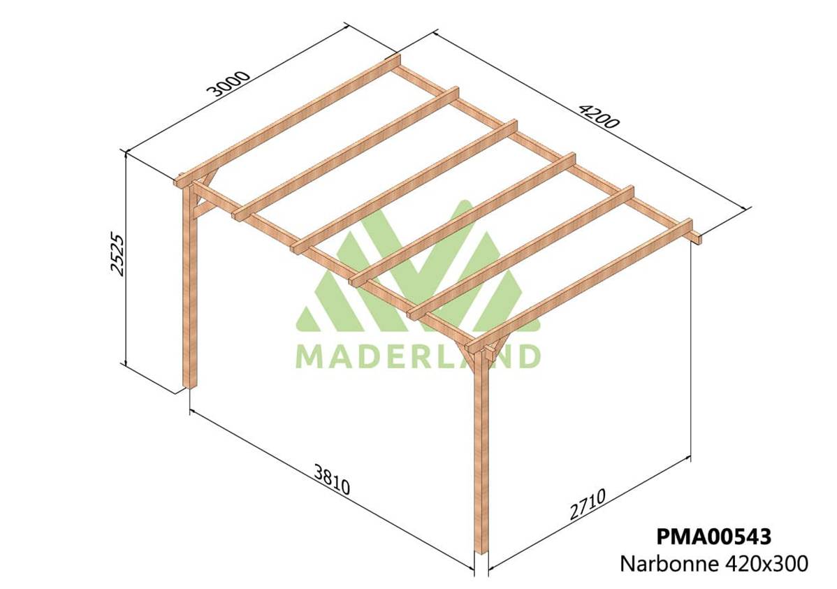 La pergola bois adossée NARBONNE est fabriquée par Maderland en bois massif traité provenant du nord de l’Europe, où la croissance lente garantit de meilleures propriétés mécaniques face à toute éventuelle adversité, améliorant la résistance à la flexion statique, à la compression et à la traction.