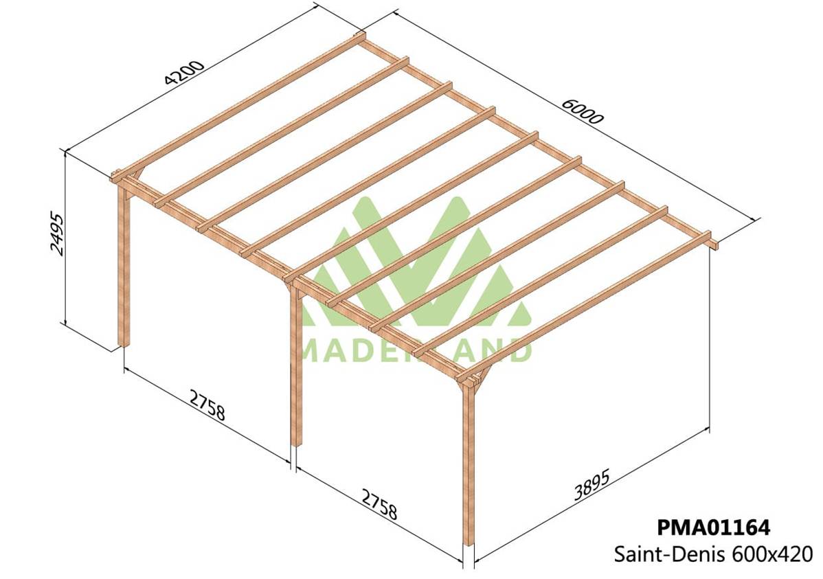 La pergola bois adossée SAINT-DENIS est fabriquée par Maderland en bois massif traité provenant du nord de l’Europe, où la croissance lente garantit de meilleures propriétés mécaniques face à toute éventuelle adversité, améliorant la résistance à la flexion statique, à la compression et à la traction.