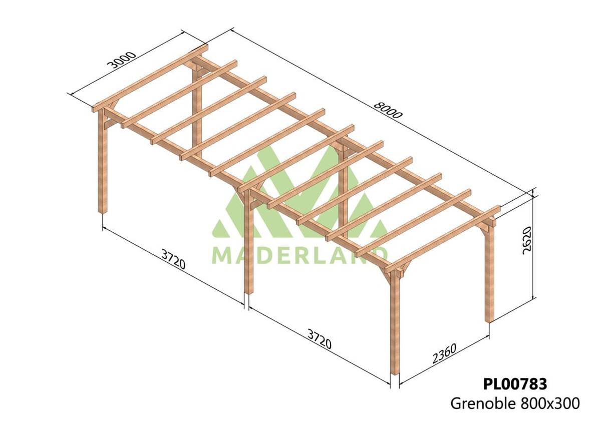 La pergola bois GRENOBLE est fabriquée par Maderland en sapin nordique lamellé-collé provenant du nord de l’Europe, où la croissance lente garantit de meilleures propriétés mécaniques face à toute éventuelle adversité, améliorant la résistance à la flexion statique, à la compression et à la traction.