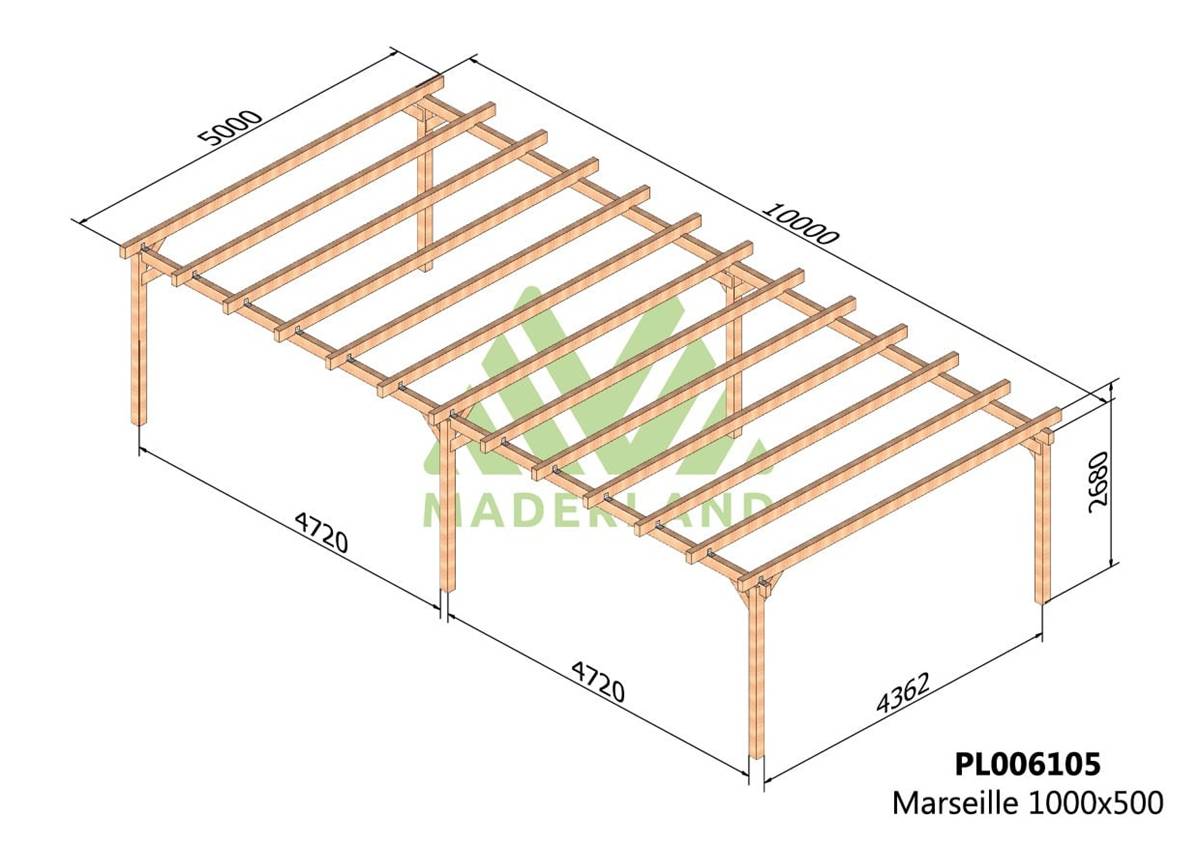 La pergola bois MARSEILLE est fabriquée par Maderland en sapin nordique lamellé-collé provenant du nord de l’Europe, où la croissance lente garantit de meilleures propriétés mécaniques face à toute éventuelle adversité, améliorant la résistance à la flexion statique, à la compression et à la traction.