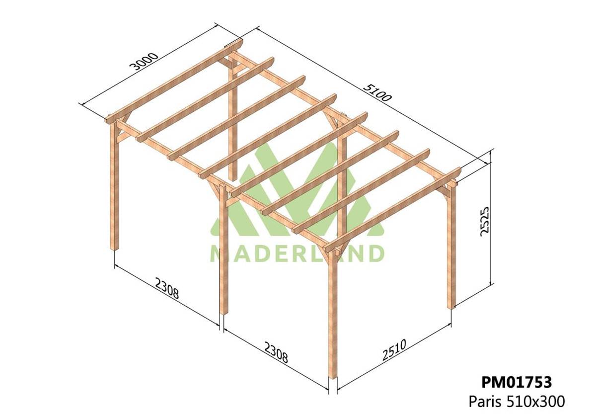La pergola bois PARIS est fabriquée par Maderland en bois massif traité provenant du nord de l’Europe, où la croissance lente garantit de meilleures propriétés mécaniques face à toute éventuelle adversité, améliorant la résistance à la flexion statique, à la compression et à la traction.